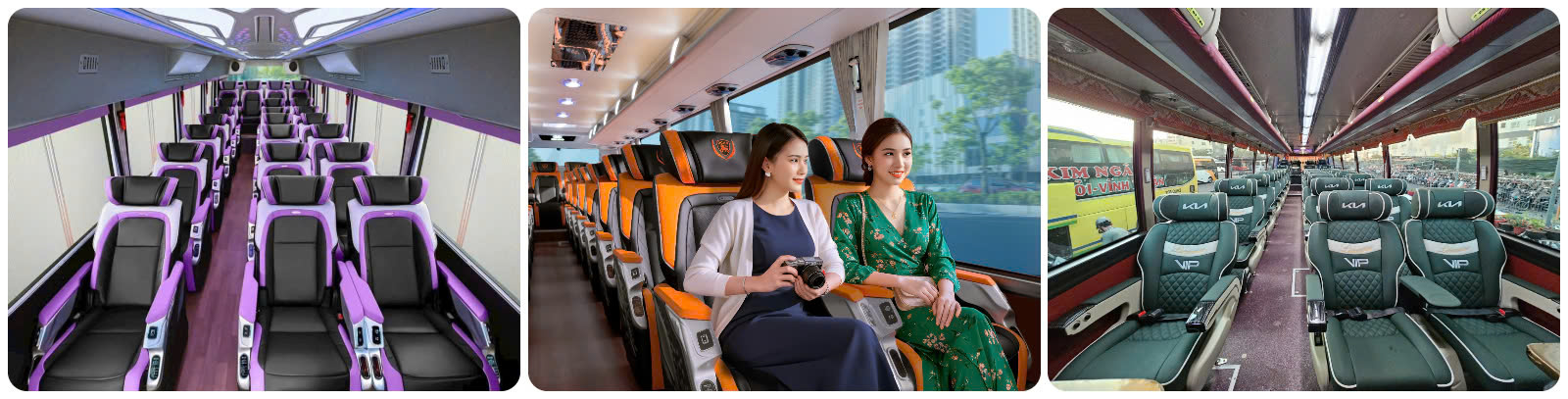 Nội thất: Ghế da hoặc bọc da cao cấp, tựa đầu cao, đệm êm, ngả sâu, khoảng cách giữa các ghế rộng rãi. Hệ thống điều hòa riêng, TV màn hình lớn, wifi miễn phí, ổ cắm USB sạc tiện lợi.