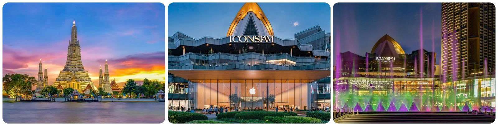 Sau đó Xe đưa đoàn ăn tối “buffet du trên thuyền” + Tham quan chụp hình bên ngoài tại “khu phức hợp thương mại siêu khủng Iconsiam” và thưởng thức các màn nhạc nước rực rỡ ánh sáng và âm thanh du dương hiện đại và dài nhất Đông Nam Á, với chiều dài 400m, nằm bên bờ sông Chao Phraya, nơi đây đã trở thành điểm đến hàng đầu mới ở Bangkok).